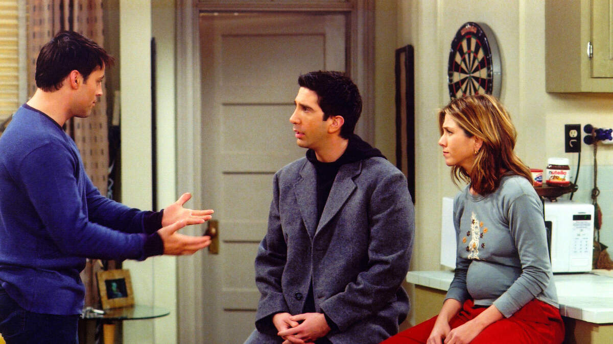 UNDATED PHOTO: Actors Matt Le Blanc (L), David Schwimmer (C) and Jennifer Aniston are shown in a scene from the NBC series 'Friends'. The series received 11 Emmy nominations, including outstanding comedy series, by the Academy of Television Arts and Sciences July 18, 2002 in Los Angeles, California. (Photo by Warner Bros. Television/Getty Images)