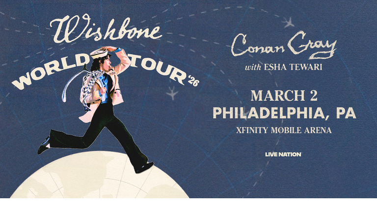 Conan Gray: Wishbone World Tour With Special Guest Esha Tewari Monday, March 2, 2026 Xfinity Mobile Arena Artist Presale is October 23rd from 9am - 10pm General On-Sale begins October 24th at 9am INFO / TICKETS