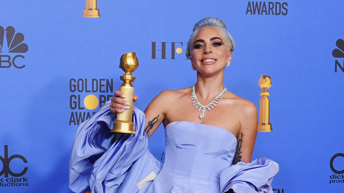 BEVERLY HILLS, CA - JANUARY 06: Winner for Best Original Song - Motion Picture for 'Shallow - A Star is Born' Lady Gaga poses with the trophy in the press room during the 76th Annual Golden Globe Awards at The Beverly Hilton Hotel on January 6, 2019 in Beverly Hills, California. (Photo by Kevin Winter/Getty Images)