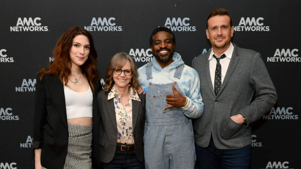 PASADENA, CALIFORNIA - JANUARY 16: (L-R) Eve Lindley, Sally Field, André Benjamin and Jason Segel of 'Dispatches from Elsewhere' attend the AMC Networks portion of the Winter 2020 TCA Press Tour on January 16, 2020 in Pasadena, California. (Photo by Andrew Toth/Getty Images)